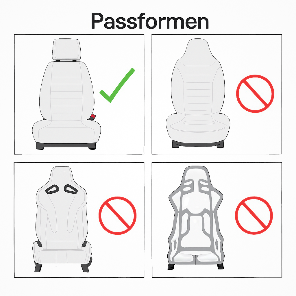 - Nicht geeignet für Sport-, Schalen- oder Sonderausstattungssitze.